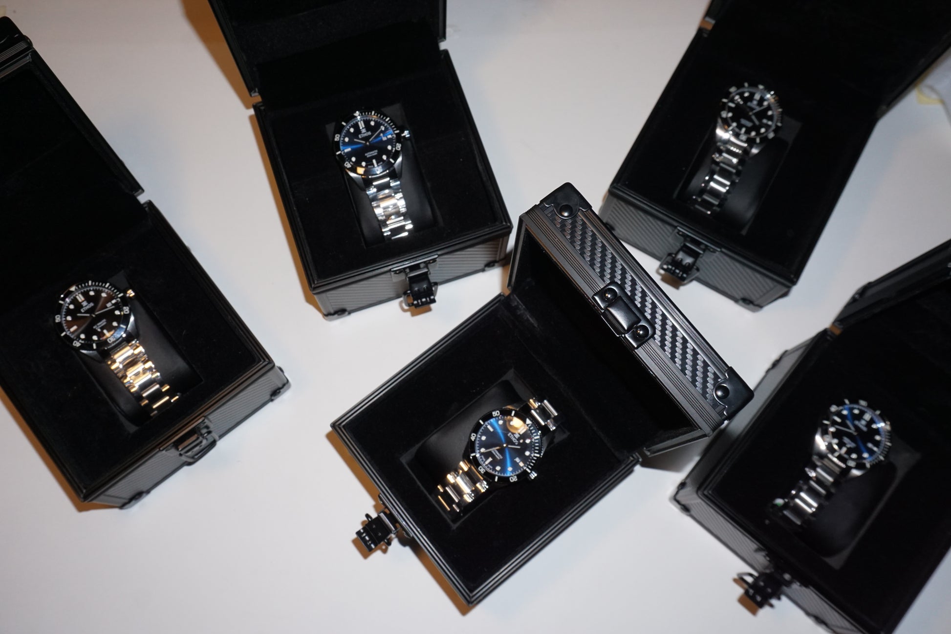 El embalaje de ETHOS está diseñado para ofrecer una experiencia de lujo y sostenibilidad. Cada reloj viene en una caja de efecto fibra de carbono, con un elegante marco de aluminio, pensada para proteger el producto y proporcionar una presentación impecable. Además, se incluye un manual de instrucciones detallado, diseñado al estilo de las grandes marcas, para asegurar que el cliente tenga toda la información necesaria sobre el cuidado y funcionamiento del reloj.